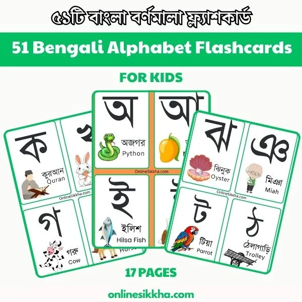 Online Sikkha » Bangla » Bengali Flashcards » 51 Bengali Alphabet Flashcards for Kids