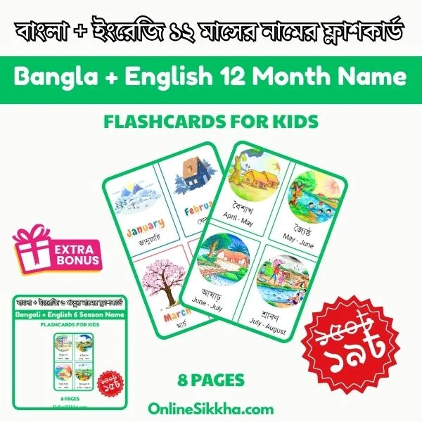 বাংলা ও ইংরেজি ১২ মাসের নামের ফ্লাশকার্ড